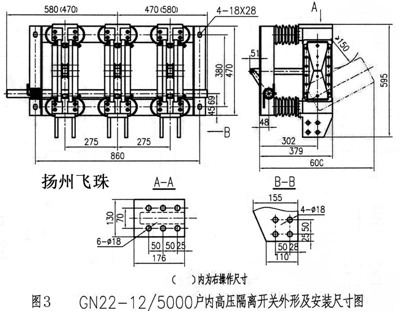图 GN22-12/5000户内高压隔离开关外形及安装尺寸图